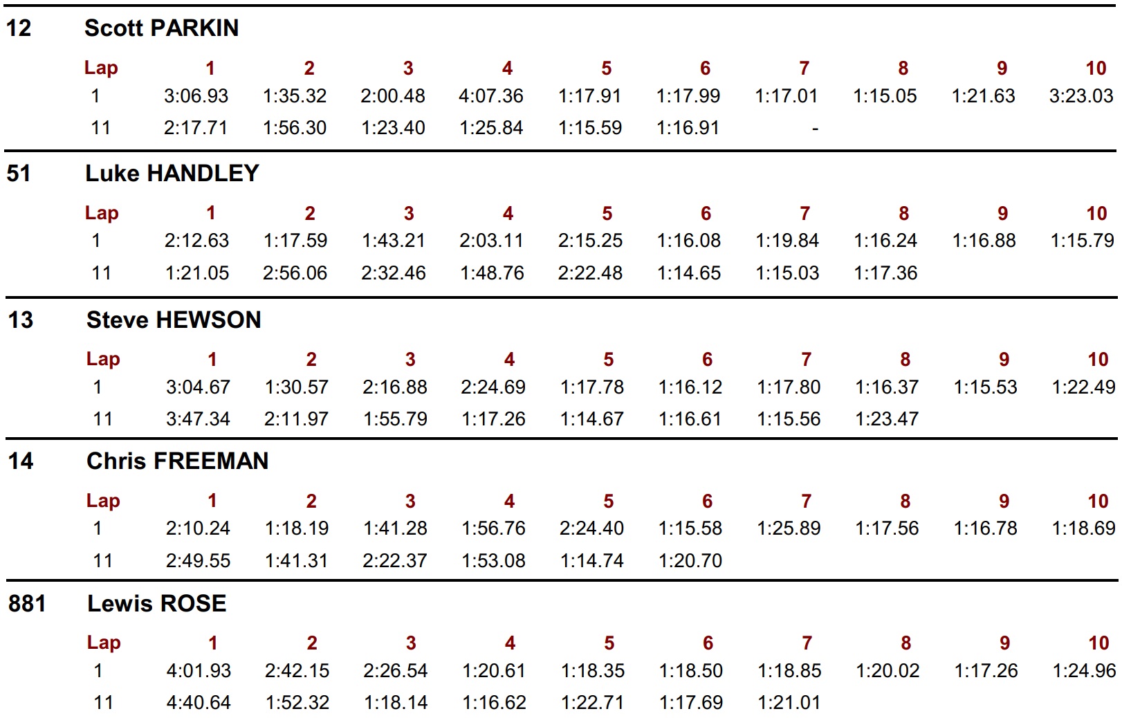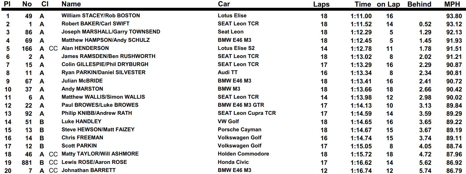Eventually Luke Handley, Steve Hewson and Chris Freeman all managed to get another flying lap in, pipping me by 0.4s, 0.38s and 0.31s respectively. I was confident with a second clear lap, I would have been close to Luke, maybe not beat it but close enough.